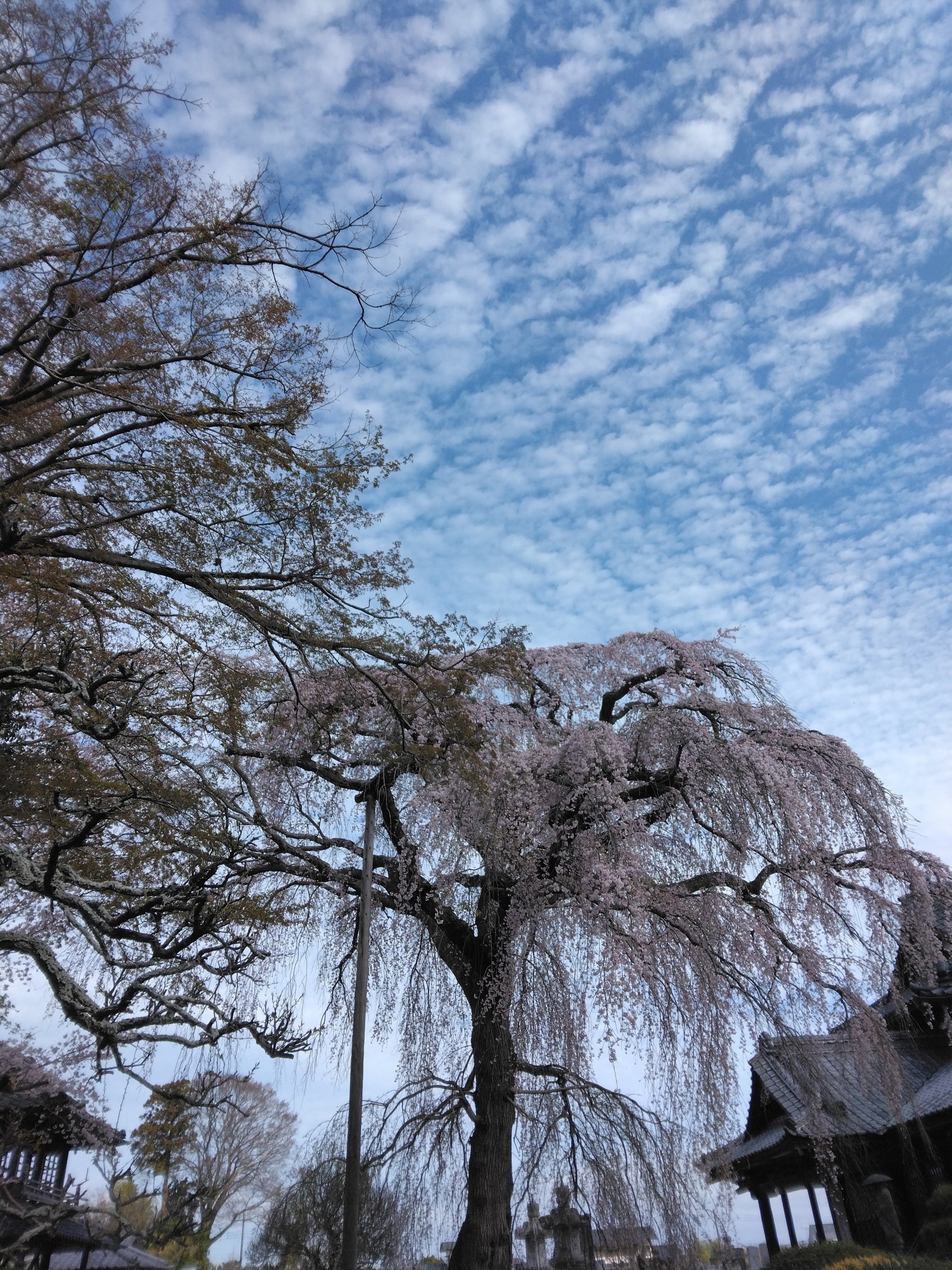 昨日、テレビいば6の放送があり、本日は朝から大賑わいでした。空もイワシ雲のような雲が現れ、枝垂れ桜も満開を祝福しているようでした。観光客は絶景に見とれていました。20年も阿弥陀寺に来ていますが最高の桜と雲のバランスでした。